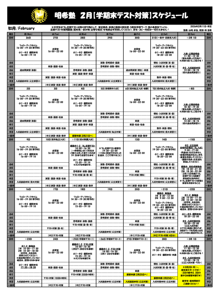 月間スケジュール